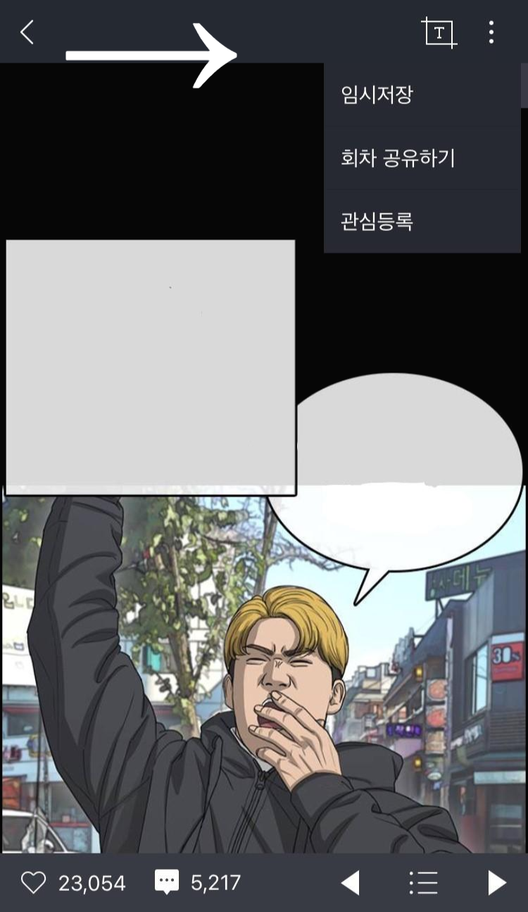 네이버 웹툰 안에 들어가면 위에 점 세개와 T라고 쓰여있는 게 있는데요. 점 세개는 회차공유와 관심등록을 해서 웹툰 알림을 받아볼 수 있어요. 그리고 T는 웹툰을 잘라서 편집과 저장할 수 있습니다. 그리고 겟짤이라는 곳에 올릴 수 있는데 현재는 너무 인지도가 떨어져서 안 사용하는 기능이기도 하죠.