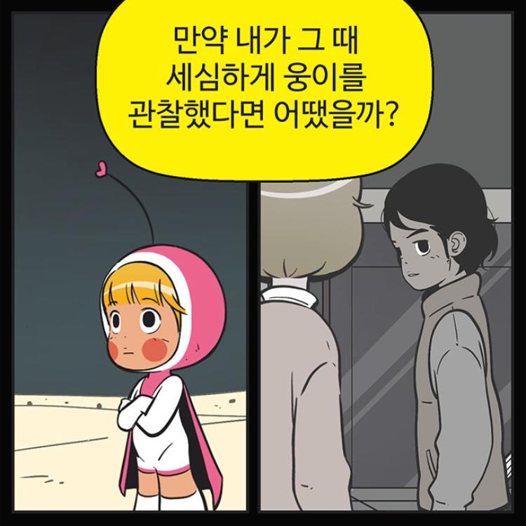 유미는 대인관계에서 자신의 잘못을 되돌아보고 성장하게 되는데요. 유미는 웅이와 헤어지고 나서 우기가 힘들 때 제대로 위로해주지 못했다는 것을 깨달아요. 웅이는 말하기 곤란한 상황이라서 유미에게 말하지 못했다는 것을 알아차리죠.