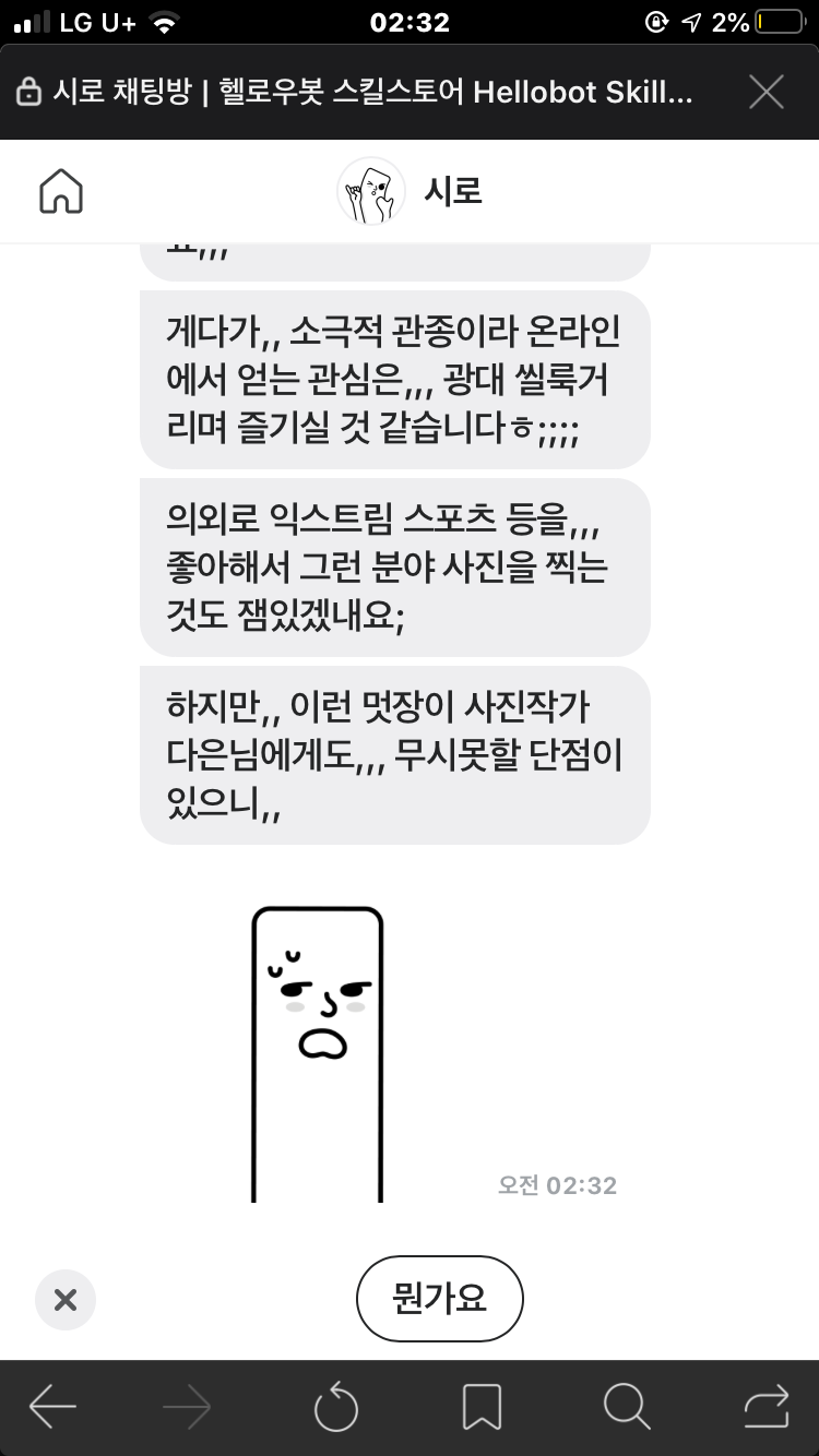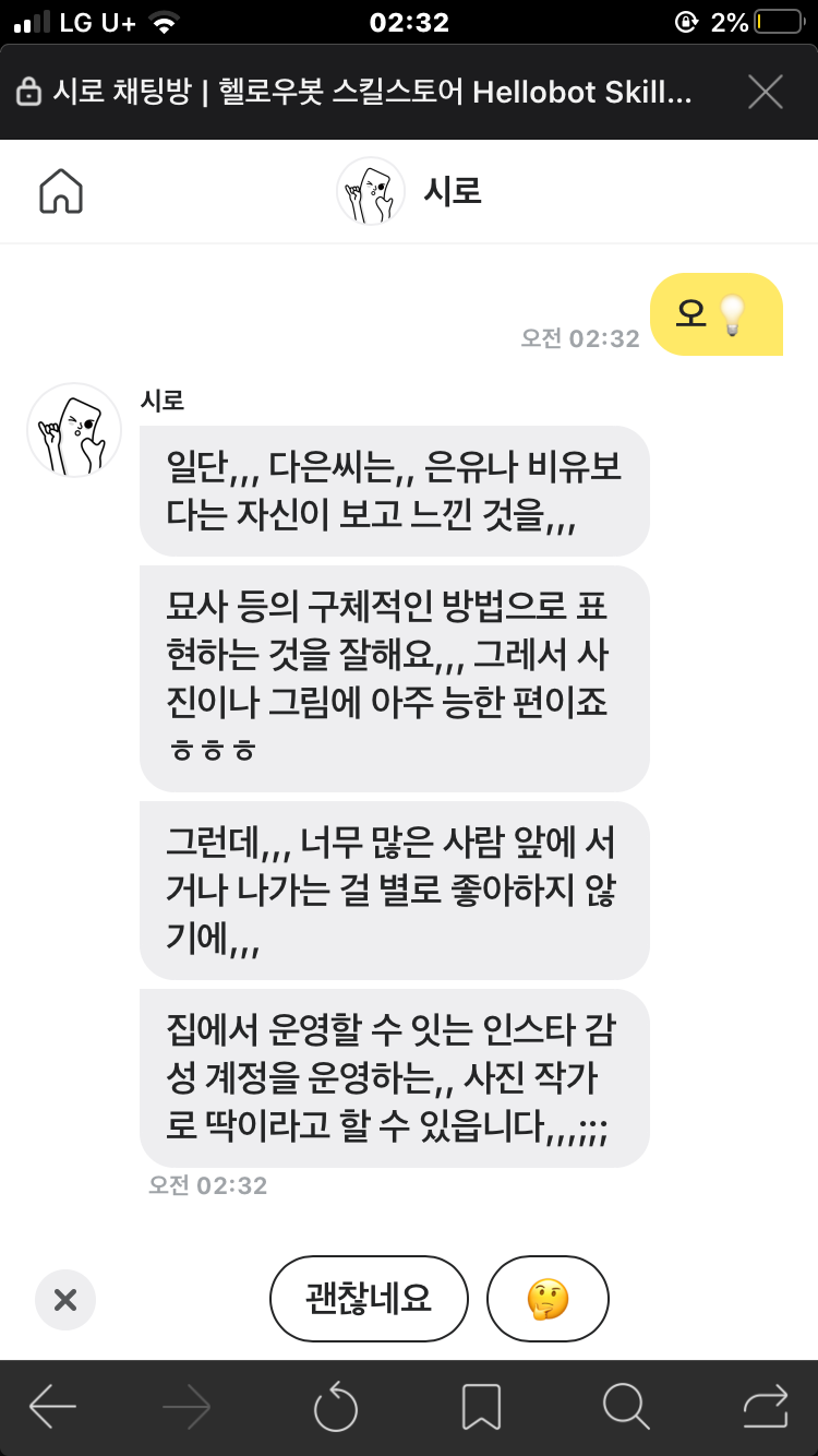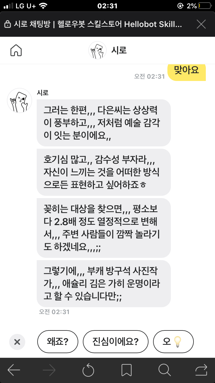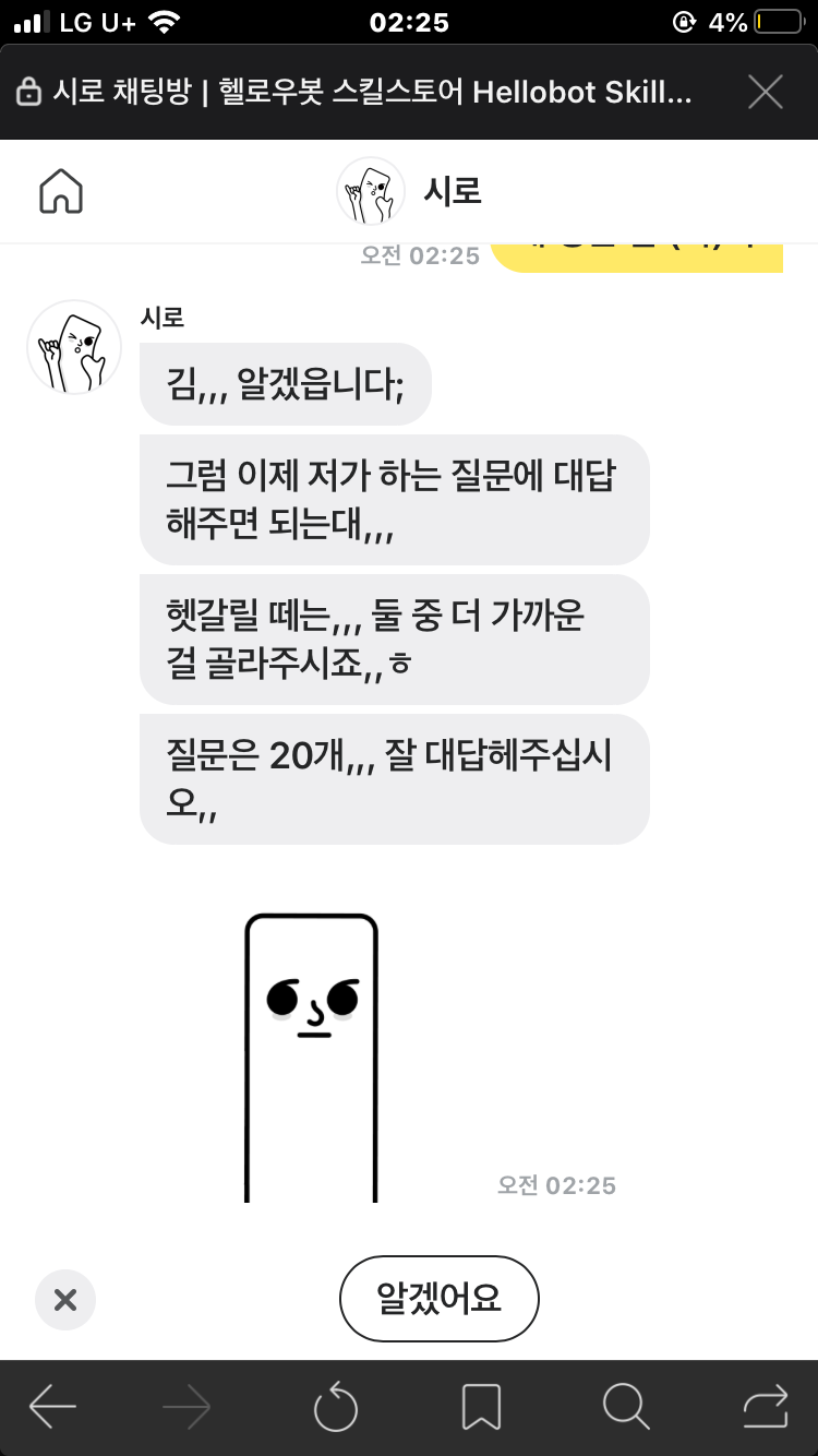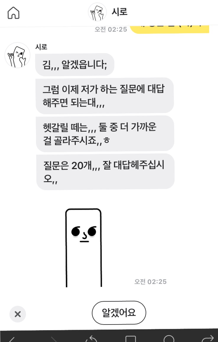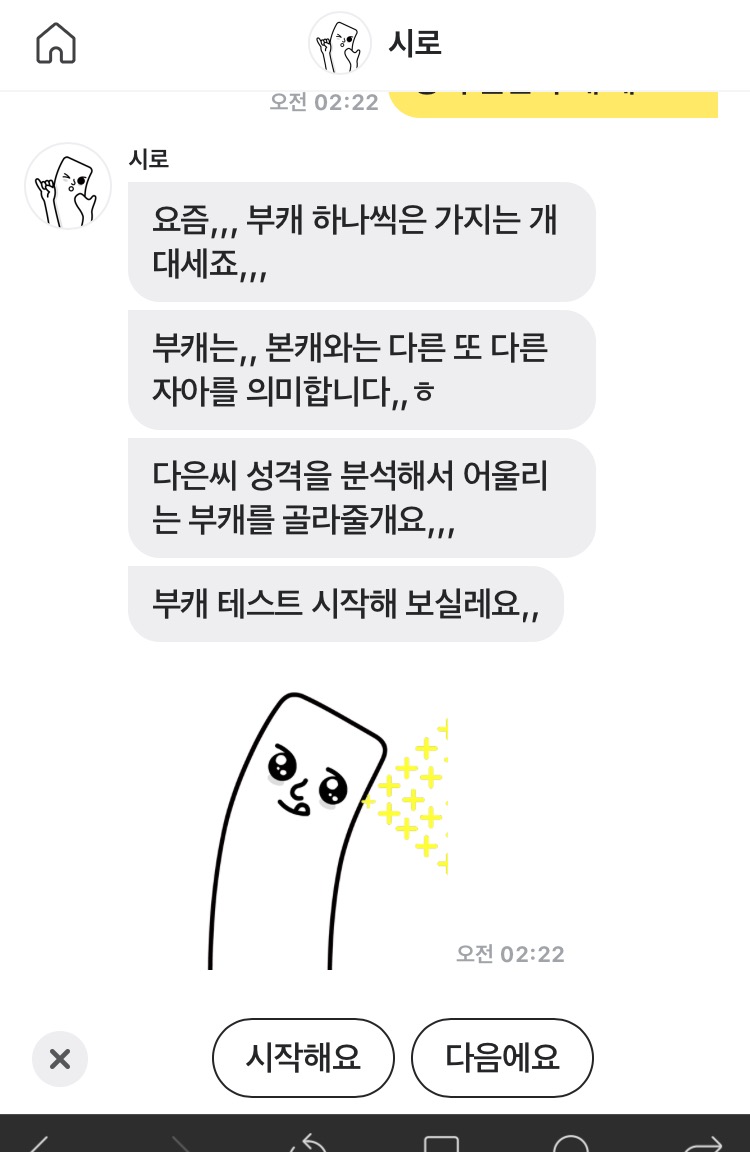 헬로우봇 시로가 알려주는 부캐 테스트(MBTI 테스트?)