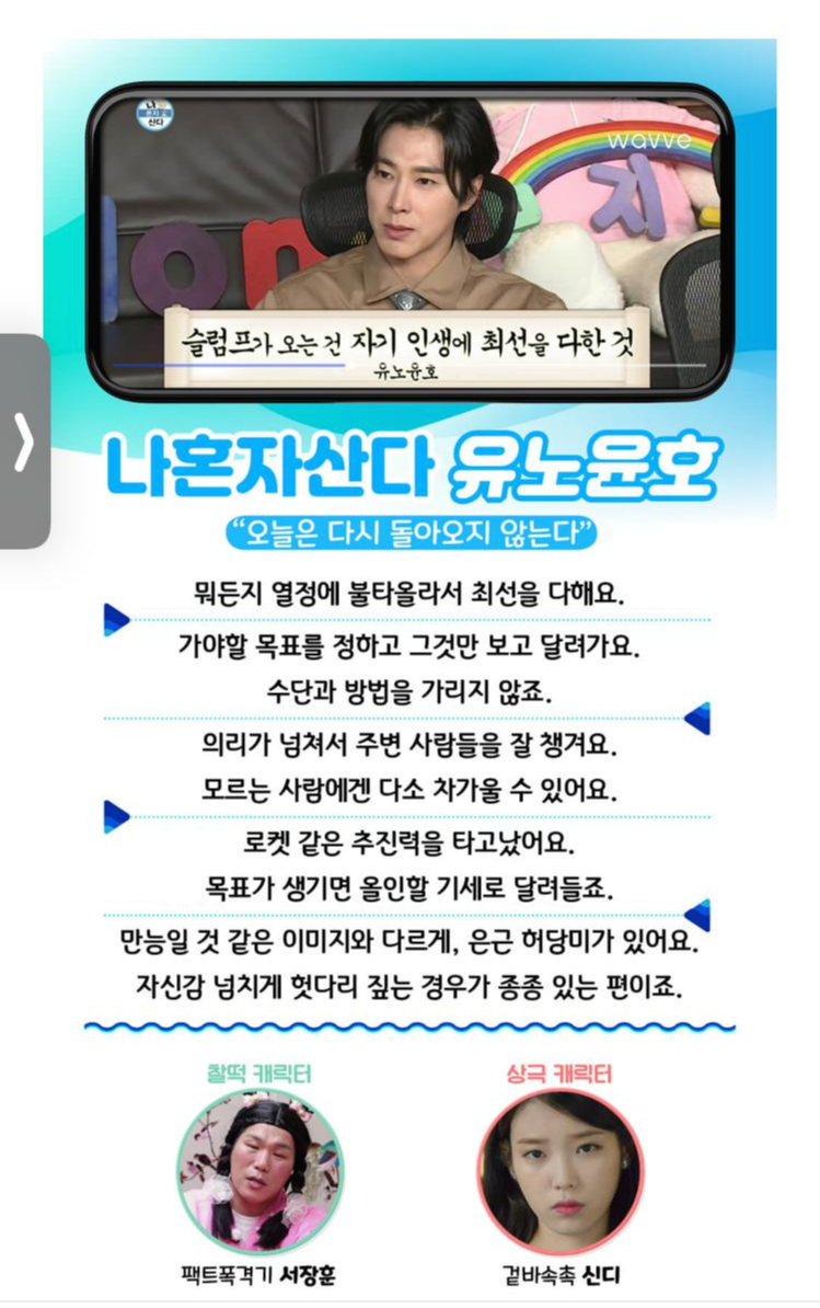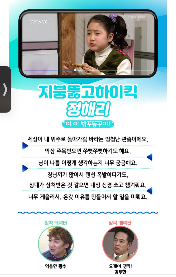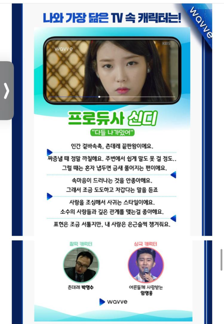 안녕하세요? 오늘은 아이유가 했다고 한 WBTI 캐릭터들을 알아볼거에요! 여기서 본인에게 맞는 캐릭터와 어울리지 않는 캐릭터들을 모두 찾아봐요!