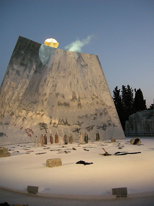 아래의 사진은 데우스 엑스 마키나의 예시 작품, 그리스의 비극 메데이아의 공연입니다.