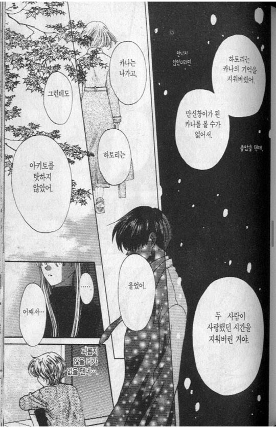 이렇게 재미있는 내용과 귀여운 작화임에도 이야기는 생각보다 깊습니다. 사랑하는 사람의 기억을 지우기도 하는 인물도 있고 서로를 동경하지만 솔직해질 수 없던 인물들. 그리고 십이지들 간에도 상처를 주고 받기도 합니다. 특히 가정에서 받은 상처이기 때문에. 그들을 아픔을 이해하려는 토오루가 인물들의 차가웠던 마음을 조금이나마 녹여줍니다.